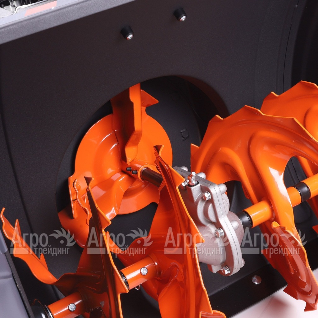 Зубчатый шнек, изготовленный из стали, обеспечивает более эффективное измельчение наледи и снега. Шнек состоит из 4-х независимых друг от друга спиралей с увеличенной рабочей поверхностью. Количество скоростей 5 вперед и 2 назад позволяют выбрать удобную скорость движения снегоуборщика. Разблокировка шплинтом на осях позволяет легко маневрировать, служит инструментом для разворота агрегата в неудобных местах без перетаскивания всей массы снегоуборщика, очень удобна при транспортировке.